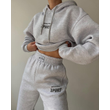 Long Sleeve Hooded Printed Sweater Trousers Suit Gray S
