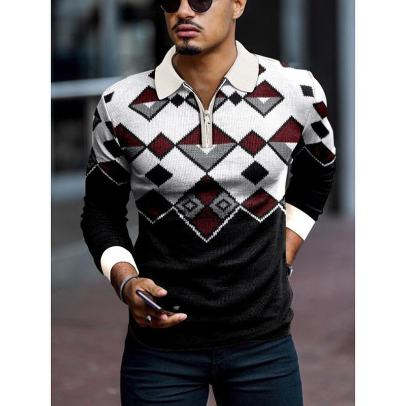 Long Sleeve Men's Casual Polo Shirt Top Men's Clothing 3 Style M