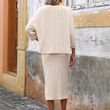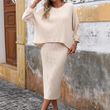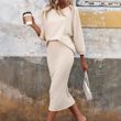 Long Sleeve Narrow Knit Casual Long Dress Suit Apricot S