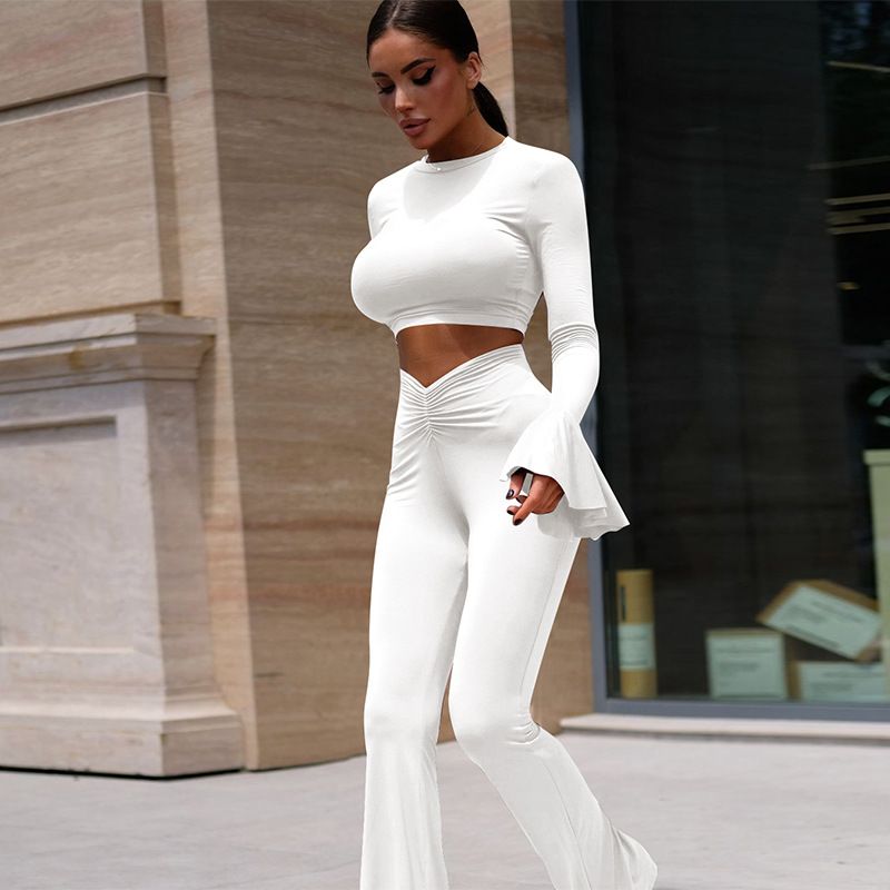 Long Sleeve Pleated Slim Trousers Fashion Suit White L