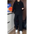 Long Sleeve POLO Shirt Trousers Suit Men's Casual Black 5X