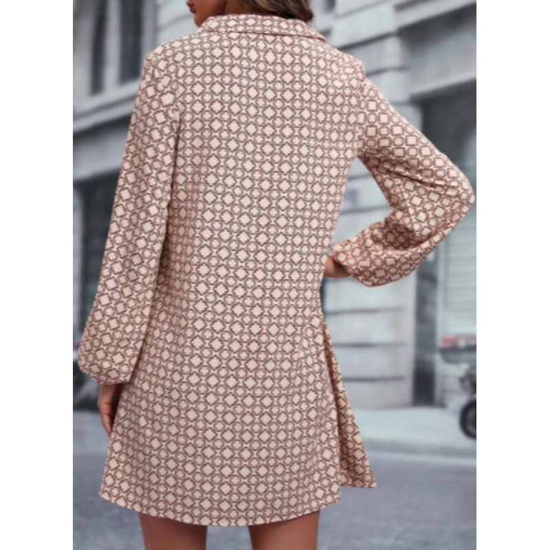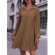 Long Sleeve Printed Polo Collar Dress Floral Dress Green 2XL