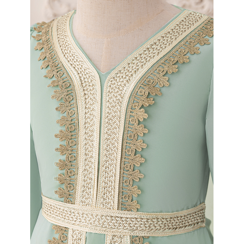 Long Sleeve Ramadan Muslim Baby Girl Dress Dubai Eid Prayer Arab Robe Enfant Party Princess Dress Girls Flower Prom Kids Clothes