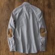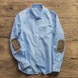Long Sleeve Retro Men's Shirt Stitching Suede Patch Slim Shirt Men Light Blue 2XL