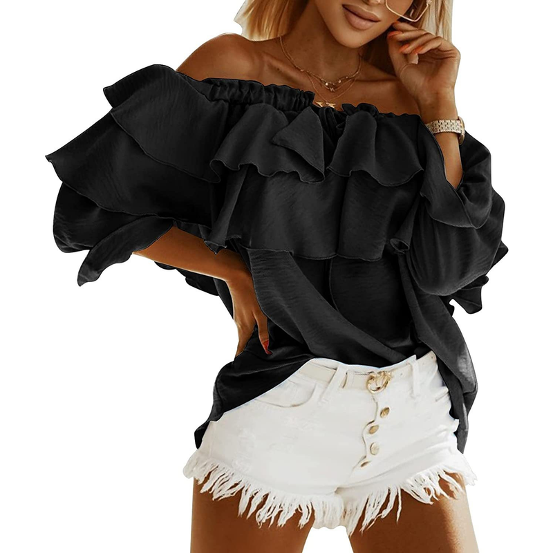 Long Sleeve Shirt Casual Layered Women's Top Black L
