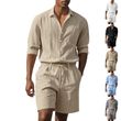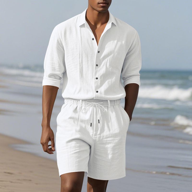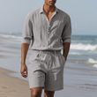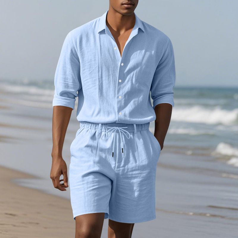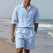 Long Sleeve Shirt Casual Shorts Beach Suit Light Blue XXXL