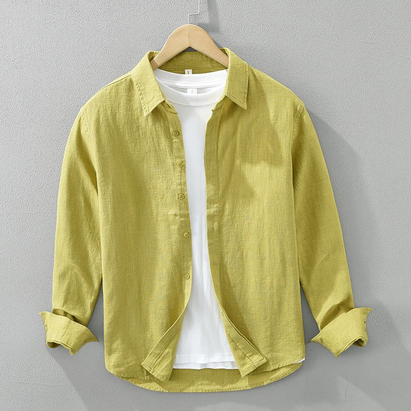 Long Sleeve Shirt Men's Fashion Casual Artistic Loose Linen Top Yellow M