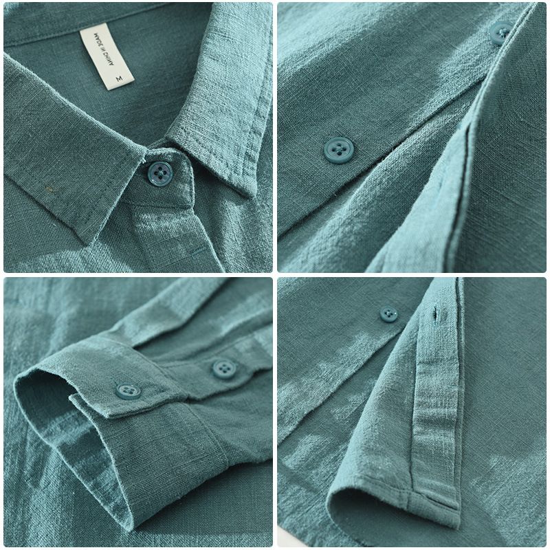 Long Sleeve Shirt Men's Fashion Casual Artistic Loose Linen Top Yellow XXL