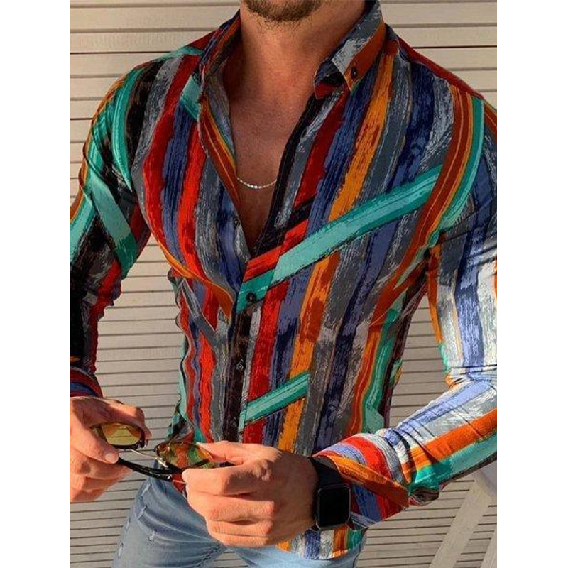 Long Sleeve Shirt Simple Printed Men's Casual Printed Shirt Style 5 XL