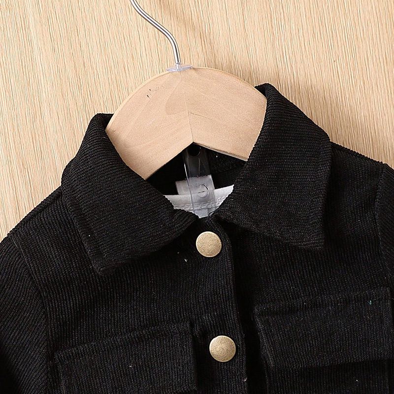 Long Sleeve Solid Color Coat Trousers Suit Black 2to3Y