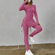 Long Sleeve Split Round-neck Shirt Loose Smart Trousers Suit Rose Red 2XL