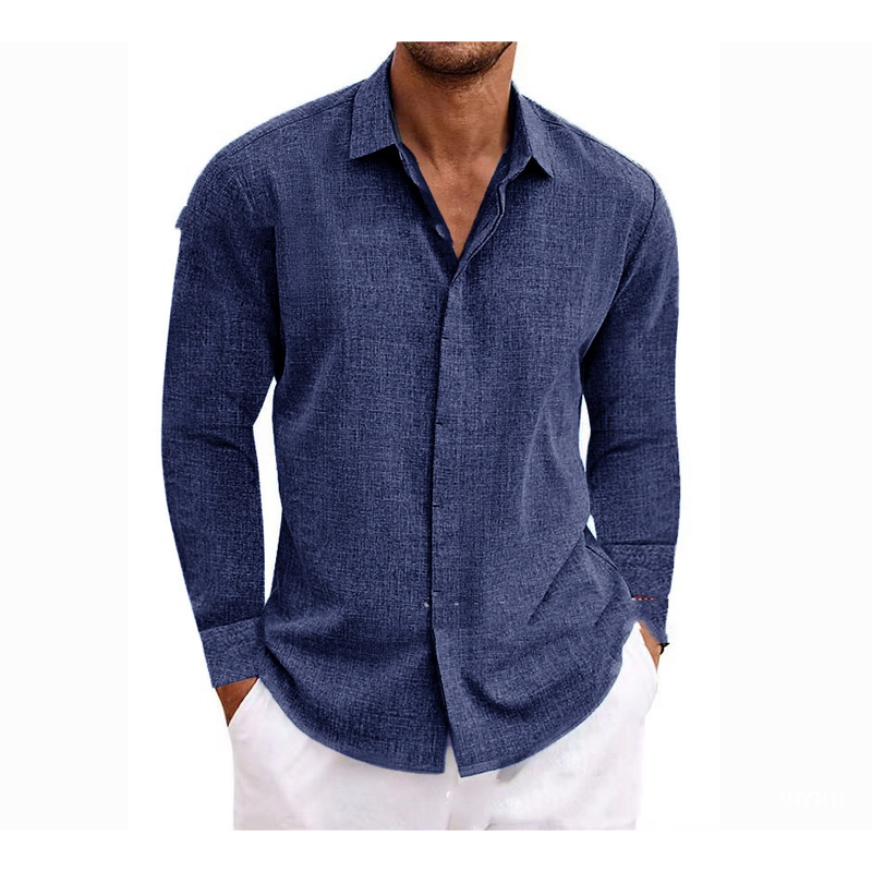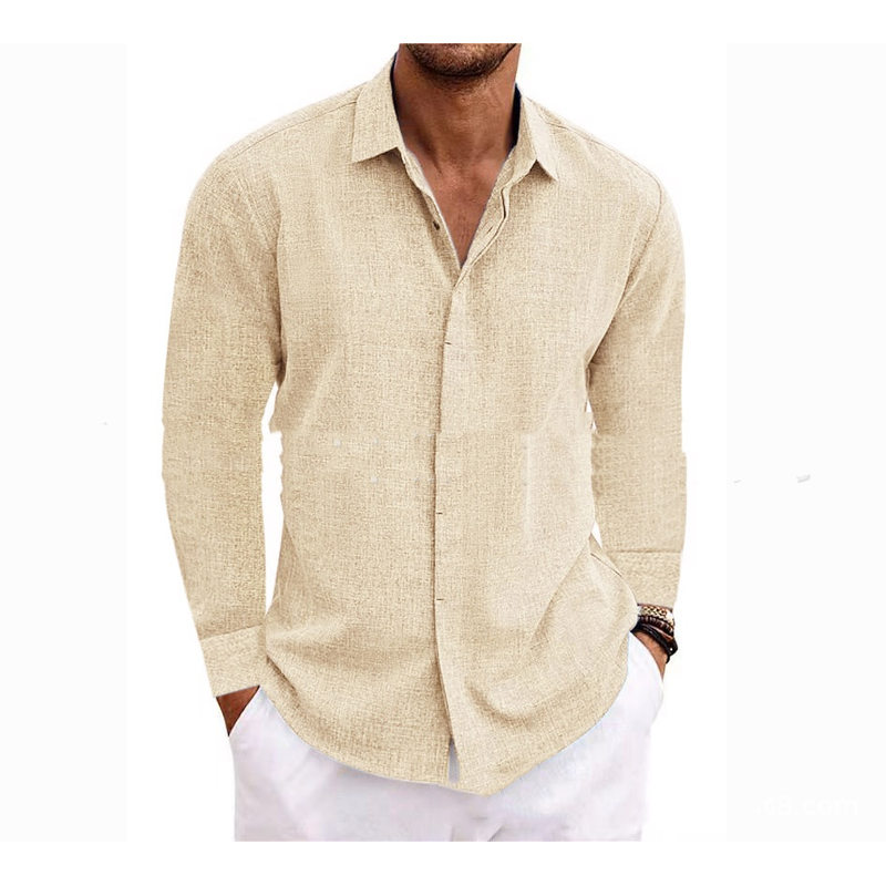 Long Sleeve T-shirt Undershirt Solid Color Long Sleeve Cotton Linen Shirt Men Gray S