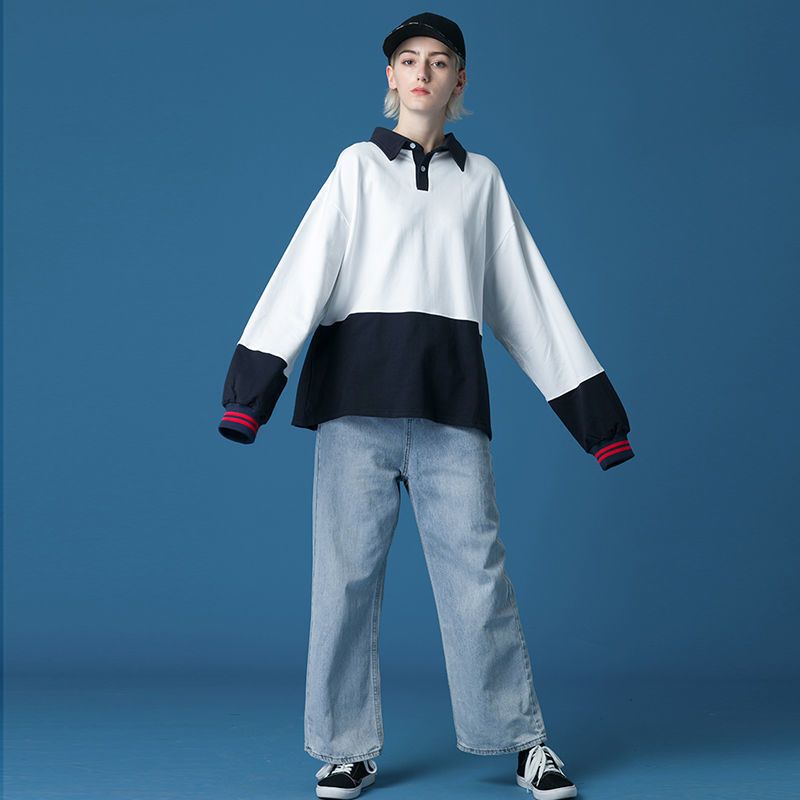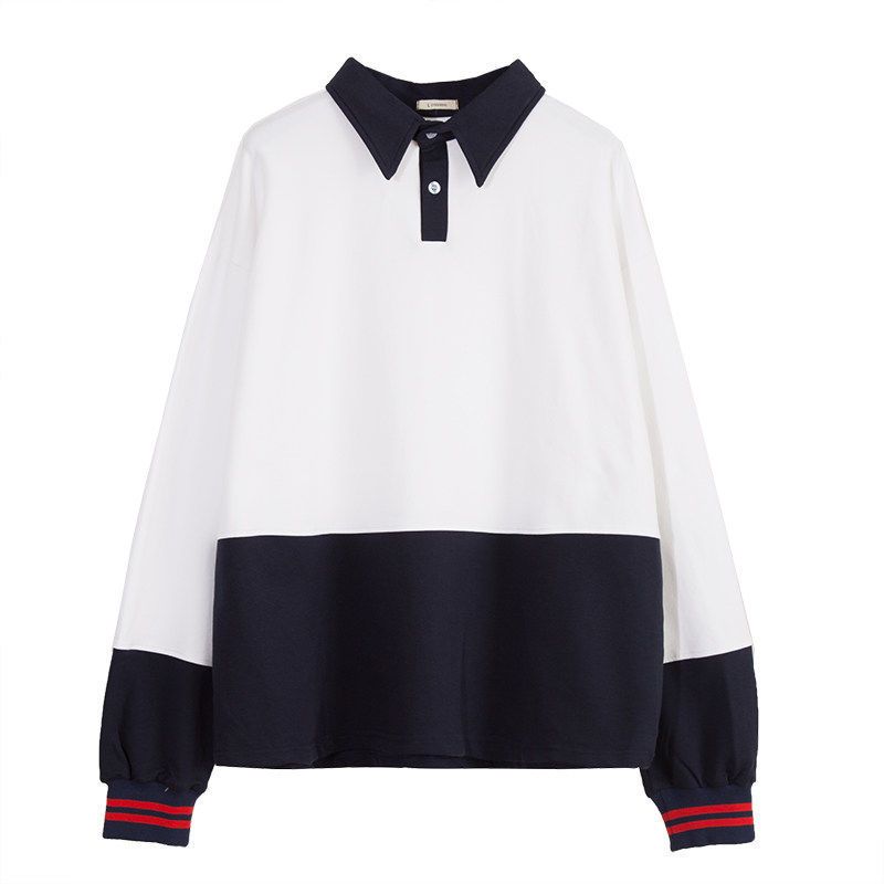 Long Sleeve T-shirt Women''s Pure Cotton Sleeve Korean Base Polo Shirt Loose Top White S