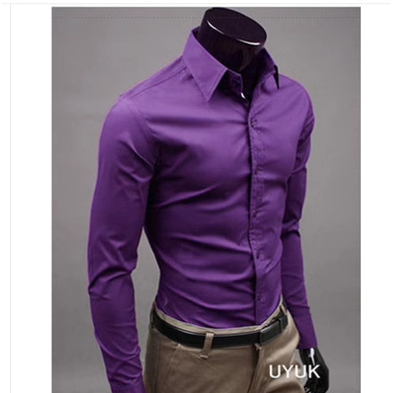 Long Sleeve Trendy Casual Slim-fit Shirt Dark Blue M
