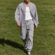 Long Sleeve Trousers Cardigan Casual Loose Beach Suit Light Blue S