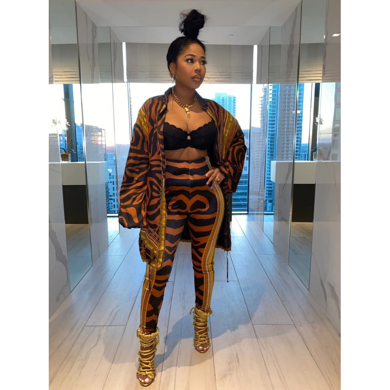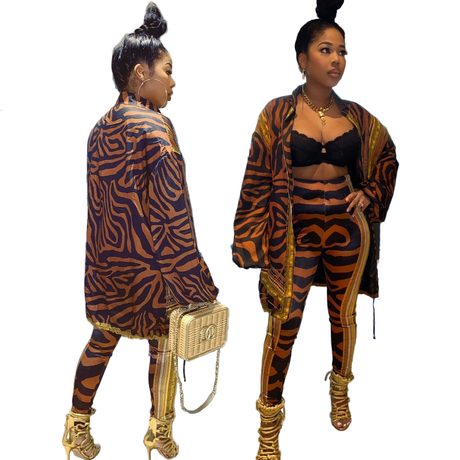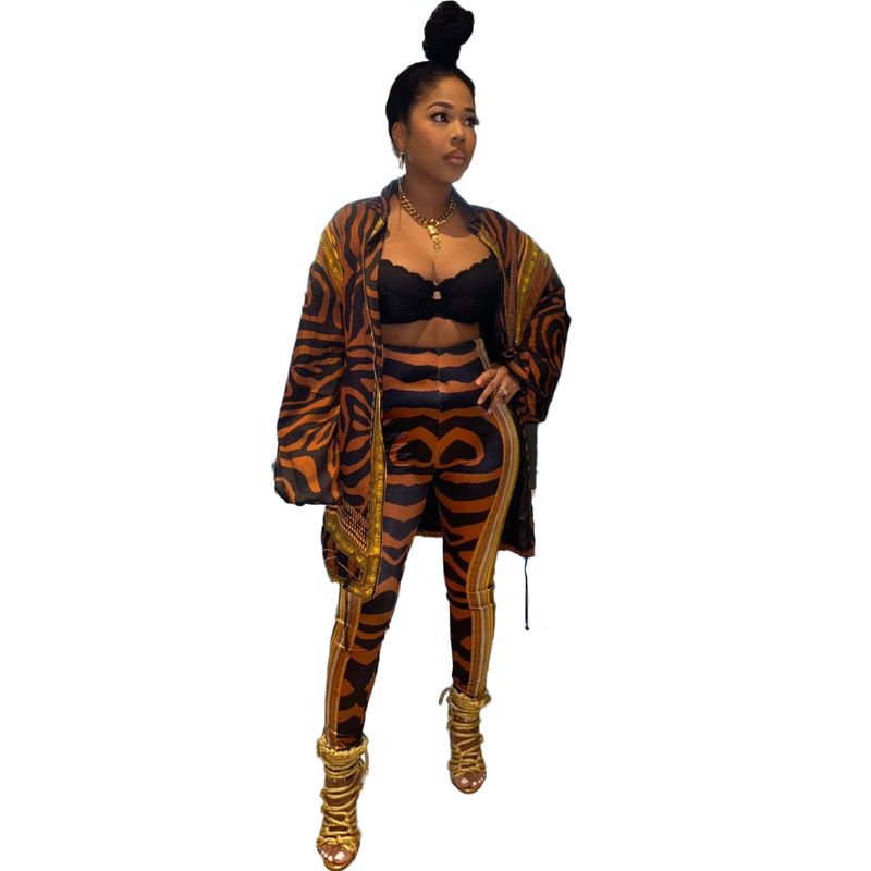 Long sleeve trousers ladies casual suit Brown S
