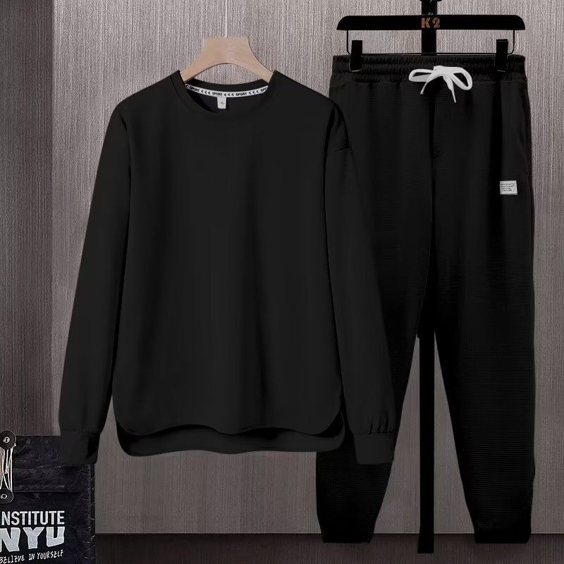 Long Sleeve Trousers Suit Men's Autumn Loose And Simple Black XL