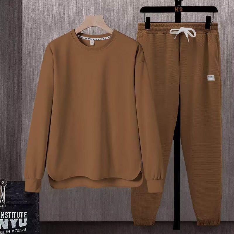 Long Sleeve Trousers Suit Men's Autumn Loose And Simple Brown 2XL