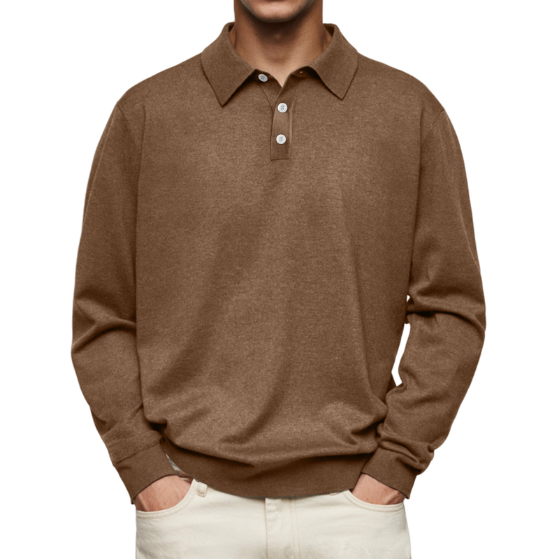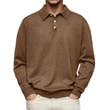 Long Sleeve V-neck Buttons Men's Casual Jacket Polo Shirt Dark Brown XL
