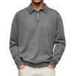 Long Sleeve V-neck Buttons Men's Casual Jacket Polo Shirt Gray 4XL