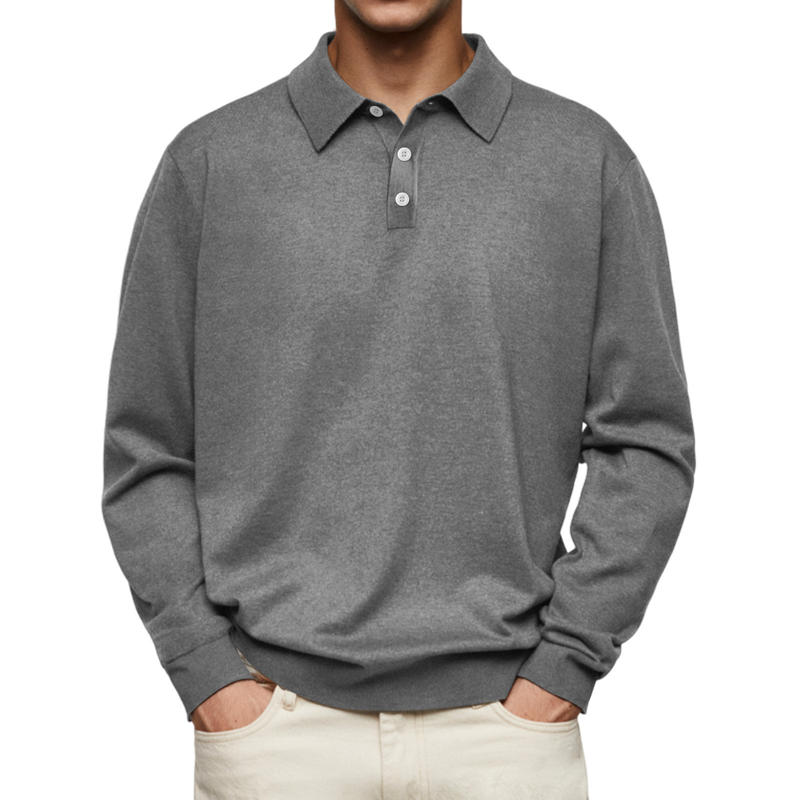 Long Sleeve V-neck Buttons Men's Casual Jacket Polo Shirt Gray S