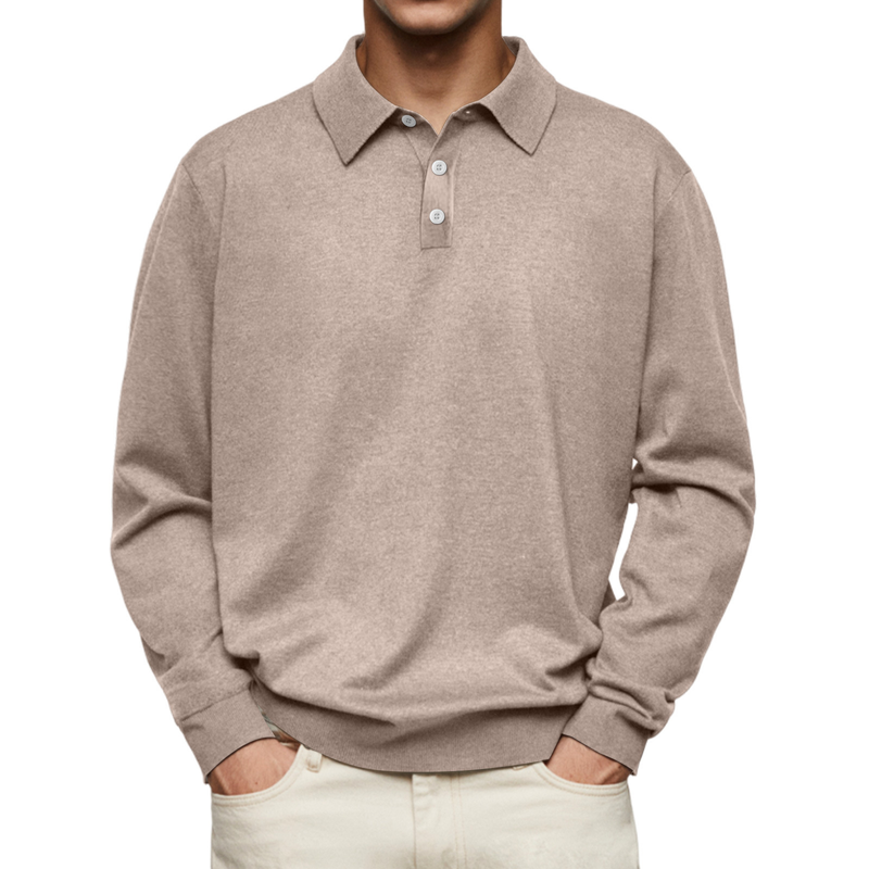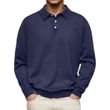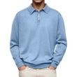 Long Sleeve V-neck Buttons Men's Casual Jacket Polo Shirt Light Blue S