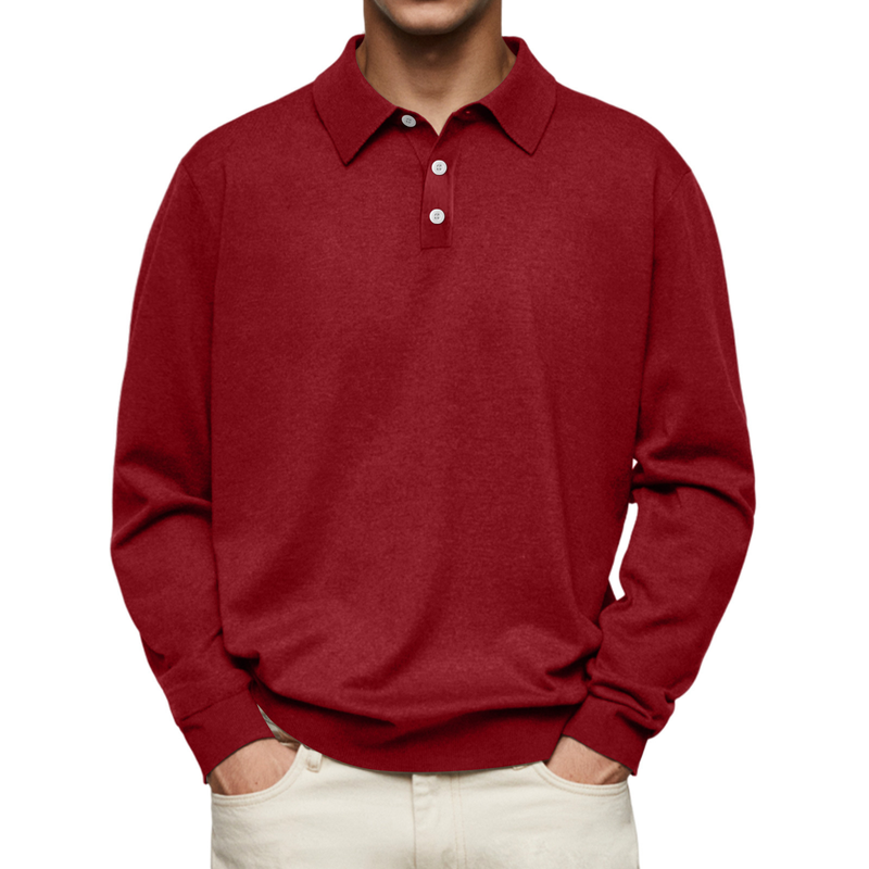 Long Sleeve V-neck Buttons Men's Casual Jacket Polo Shirt Red 5XL