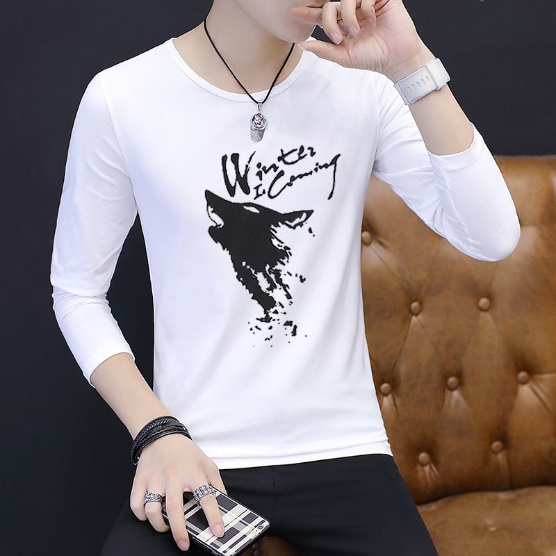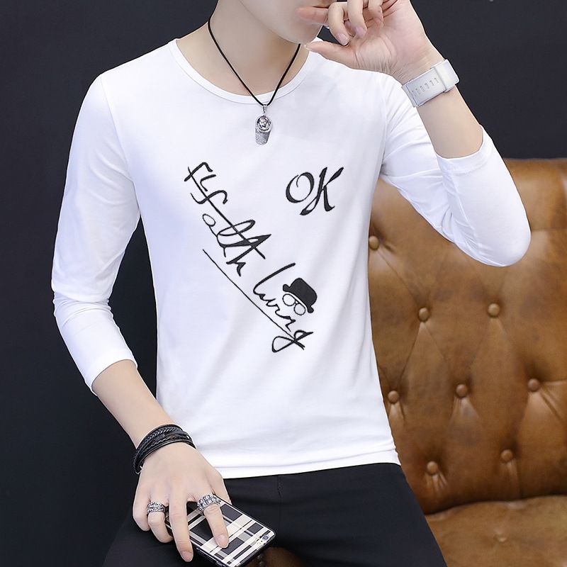 Long-sleeved Bottoming Autumn Clothes Korean Shirt T-shirt Men MA white long sleeves 3XL