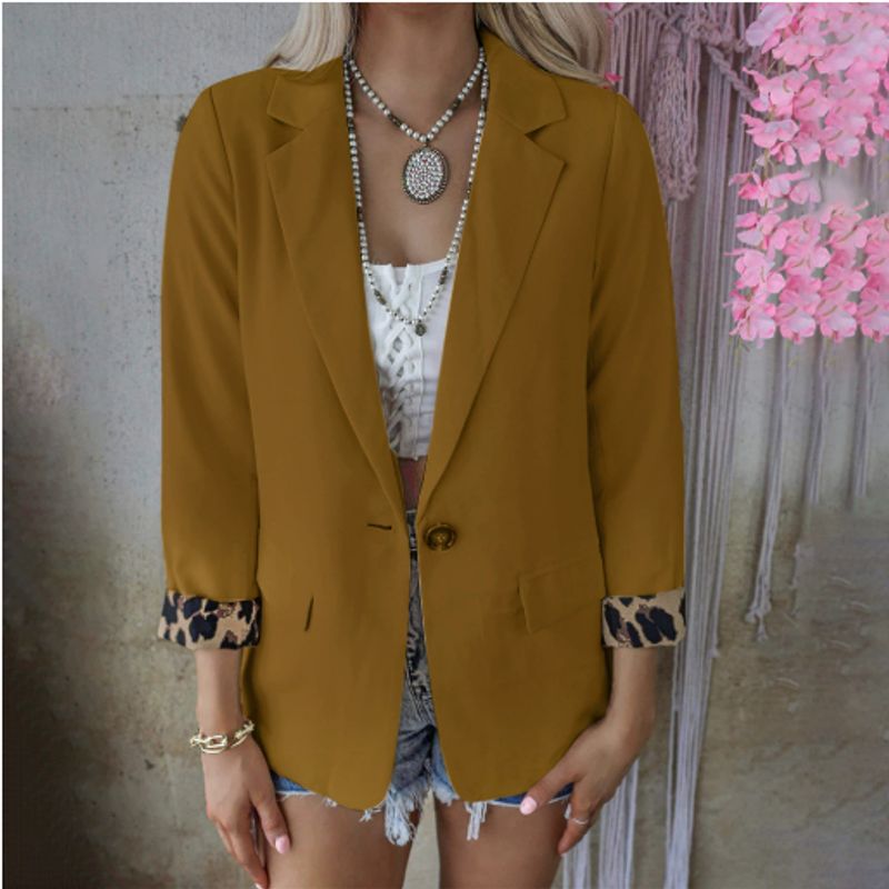 Long Sleeved Cardigan Casual Suit Coat Women Ochre 2XL