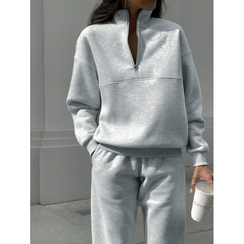 Long-sleeved Sports Sweatshirt Suit Fashion Stand-up Collar Zip-up Top And Elastic Band Trousers With Pocket Srping Fall Clothing For Women Black S