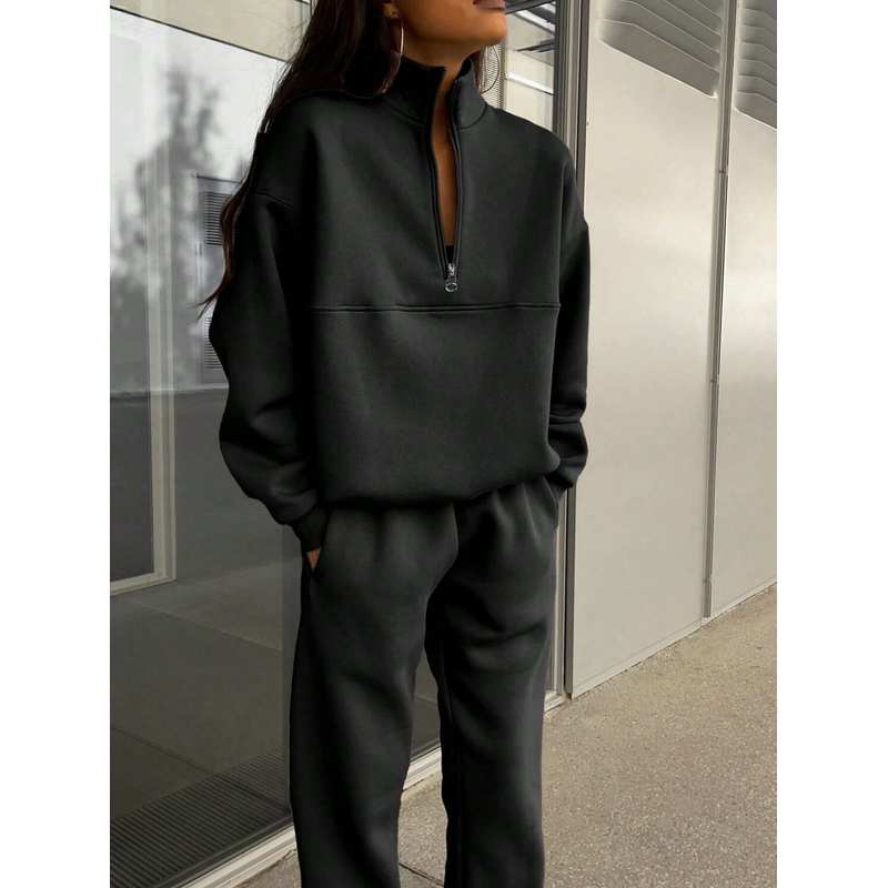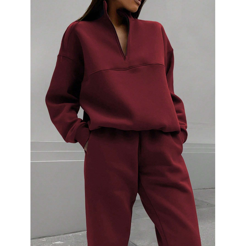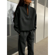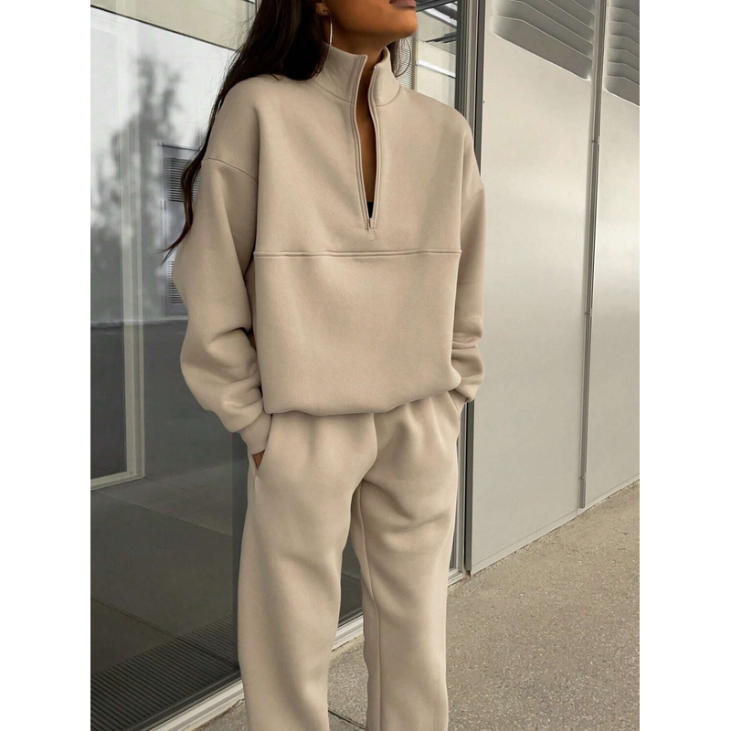 Long-sleeved Sports Sweatshirt Suit Fashion Stand-up Collar Zip-up Top And Elastic Band Trousers With Pocket Srping Fall Clothing For Women Khaki S