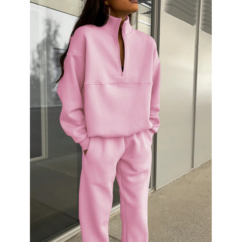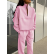 Long-sleeved Sports Sweatshirt Suit Fashion Stand-up Collar Zip-up Top And Elastic Band Trousers With Pocket Srping Fall Clothing For Women Pink S