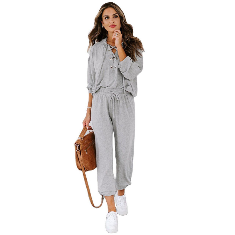 Long-sleeved Trousers Hooded Suit Sports Home Wear Grey 2XL