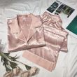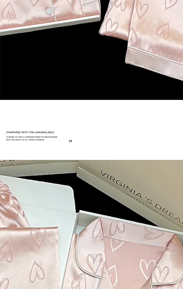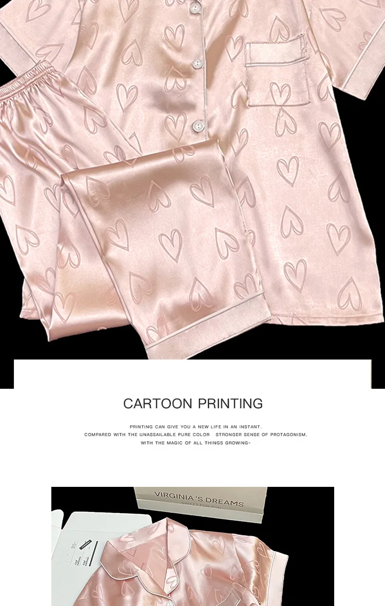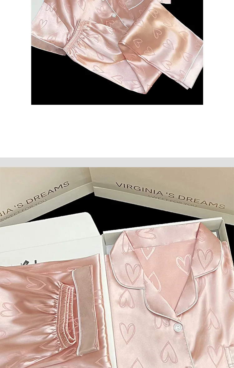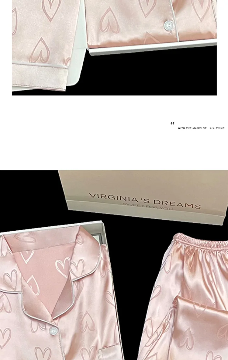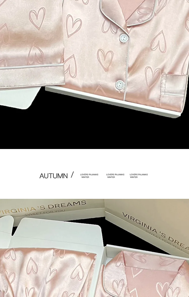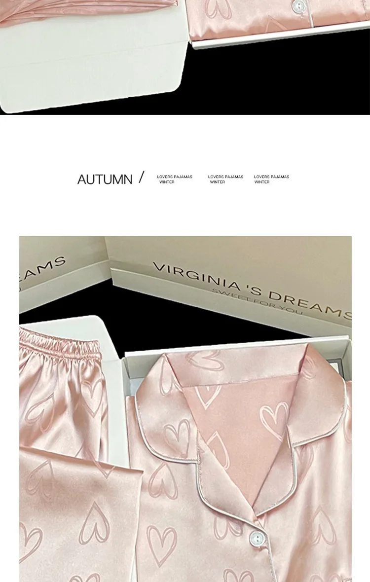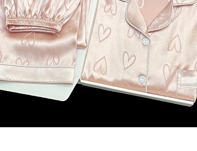 Long-Sleeved Trousers Simulation Silk Pajamas Female Autumn and Winter Cardigan Lapel Student Pajamas Love Blue Women's Homewear