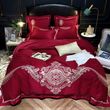 Long-staple cotton light luxury embroidery four-piece suit Red 1.8m 4pcs