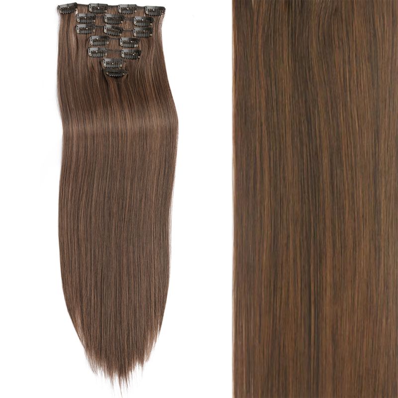 Long Straight Hairstyle 16 Clips 7Pcs/Set Hair Extensions Natural Synthetic Blonde Black Hairpieces Heat Resistant For Women