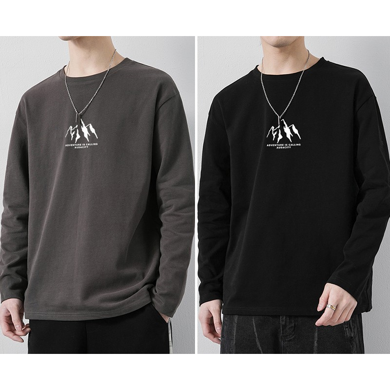 Loose Casual Cotton Long Sleeve T-shirt For Men Dark gray and black 3XL