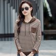 Loose Fashionable Stylish Korean Style Plus Size All-matching Long-sleeve T-shirt Coffee Stripes 2XL