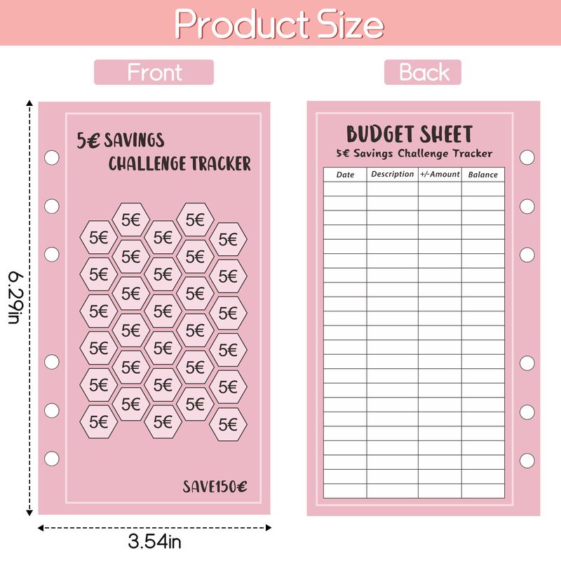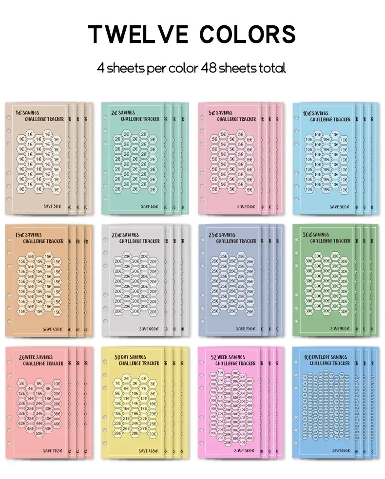 Loose Leaf Planner Notebook A6 48 Sheets Weekly Money Tracker Reusable Budget Euros USD Cash Binder
