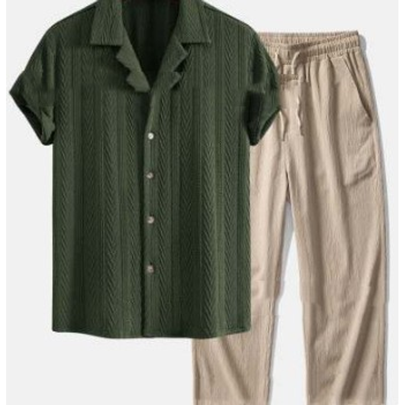 Loose Short Sleeve Shirt Trousers Suit Men QWQ6 4XL