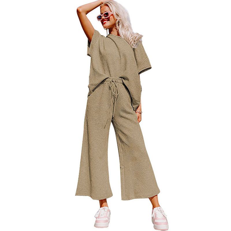 Loose Short Sleeve Trousers Suit Apricot 2XL
