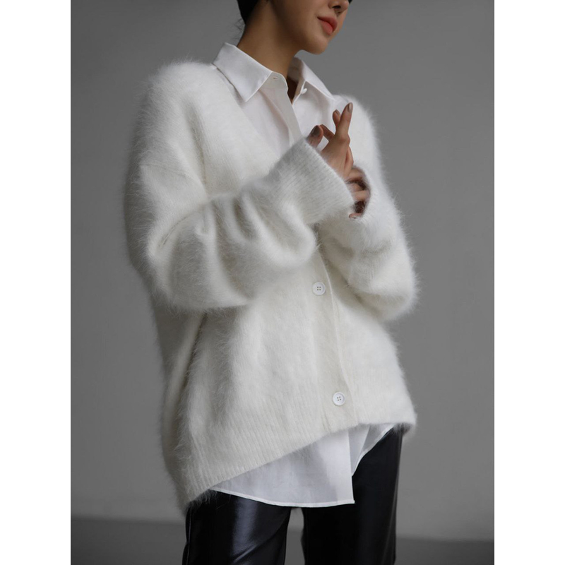 Loose V-neck Button Cardigan Fall Winter Fashion Single Breasted Knitted Sweater Top Women's Clothing Dark Gray 2XL