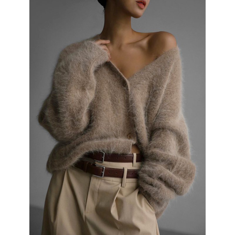 Loose V-neck Button Cardigan Fall Winter Fashion Single Breasted Knitted Sweater Top Women's Clothing Pink L
