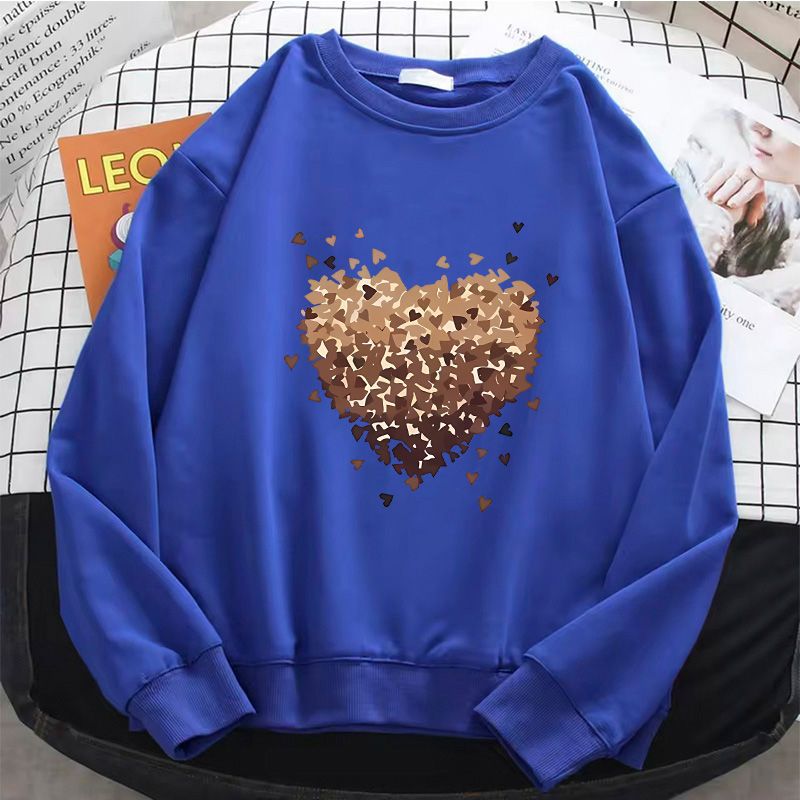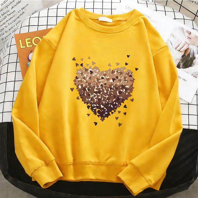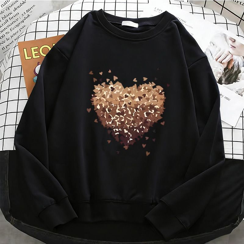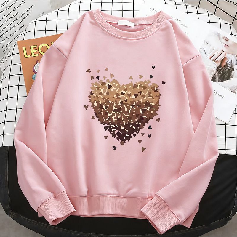 Loose Vintage Love Heart Womens Hoodies Basic Warm Fleece Sweatshirt Soft O-Neck Pullover Casual Female Clothes