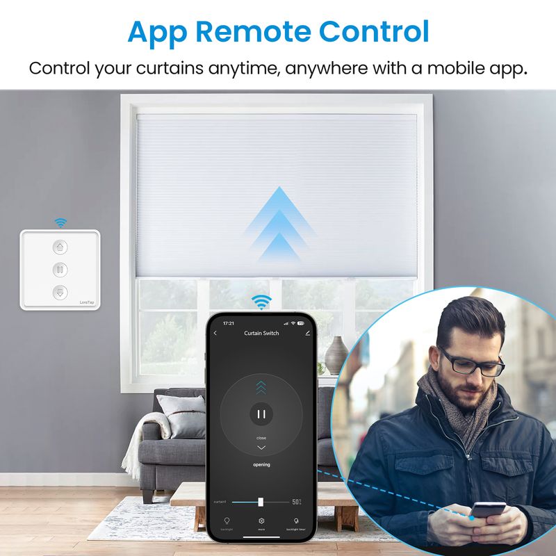 • App Remote Control: Mobile app remote control to open or close curtain.