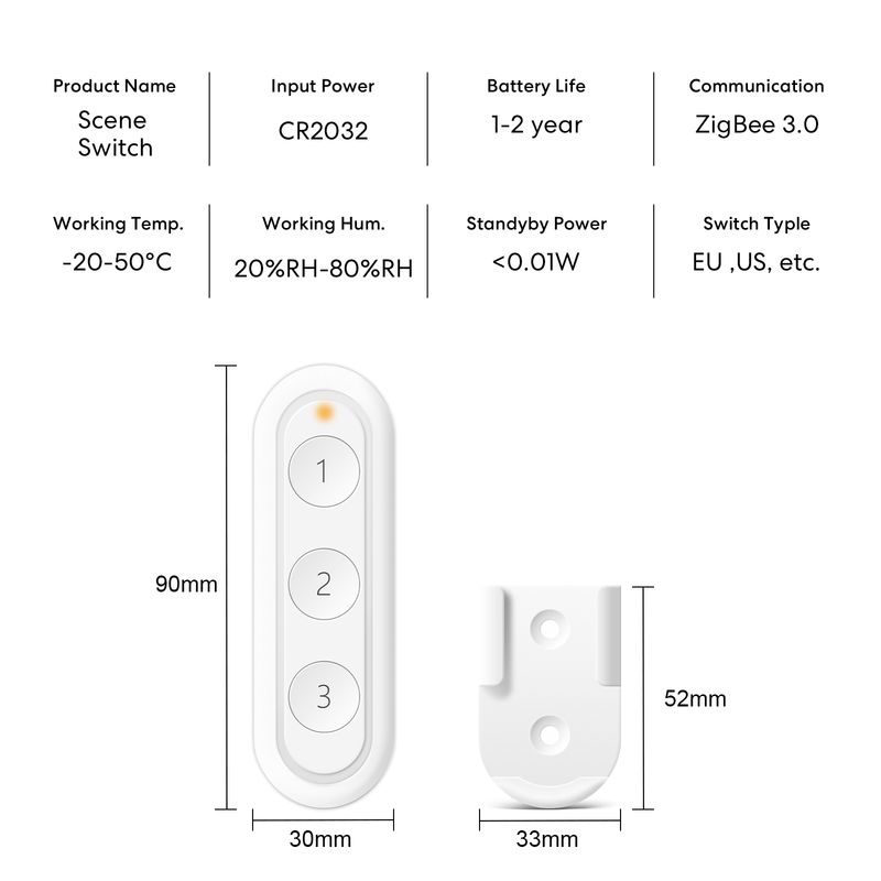 - Thanks to the wall bracket, the tuya ZigBee remote can be mountable and portable.