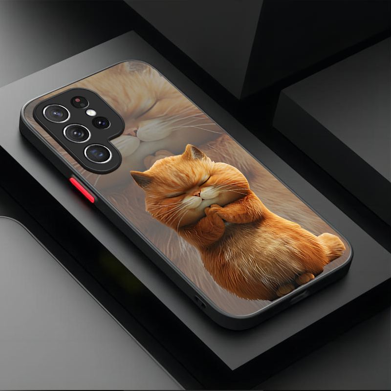 Lovely Black White Cat Matte Case For Samsung Galaxy S24 S23 S22 Ultra S21 S20 FE S10 Plus A15 A25 A35 A55 5G Note 20 10 Cover