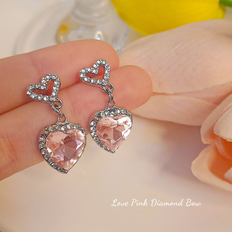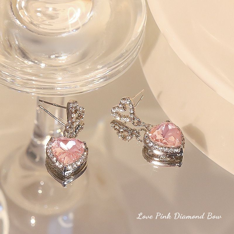 Color: Pink diamond heart-shaped earrings pair, Pink Diamond Love necklace, earrings necklace set