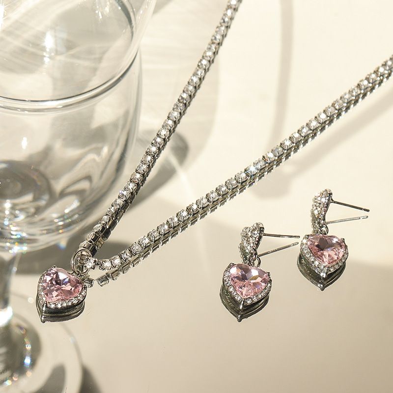 Color: Pink diamond heart-shaped earrings pair, Pink Diamond Love necklace, earrings necklace set