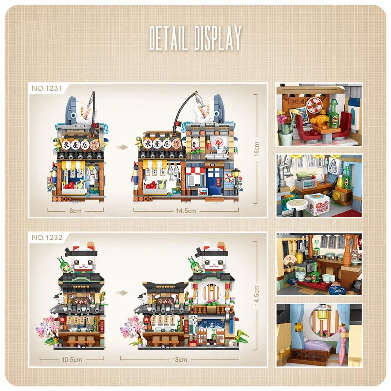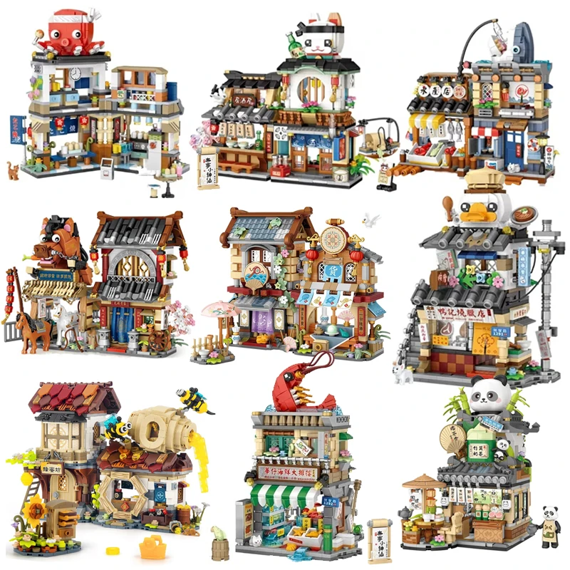 Loz Street View Series Building blocks Izakaya Shaved Ice Shop Takoyaki Shop Coffee shop Panda Tea House model children's gifts